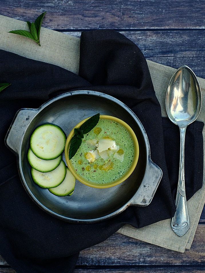 Le soleil nous fait enfin l’honneur de montrer le bout de son nez! Avec lui on a envie de manger un peu plus léger et frais. Ce gazpacho vert de concombre et courgette est parfait pour un repas vite fait, bien fait et réduit en calories.