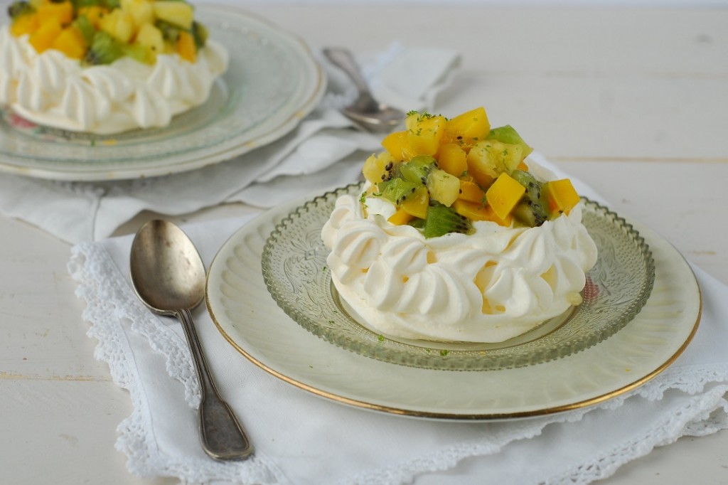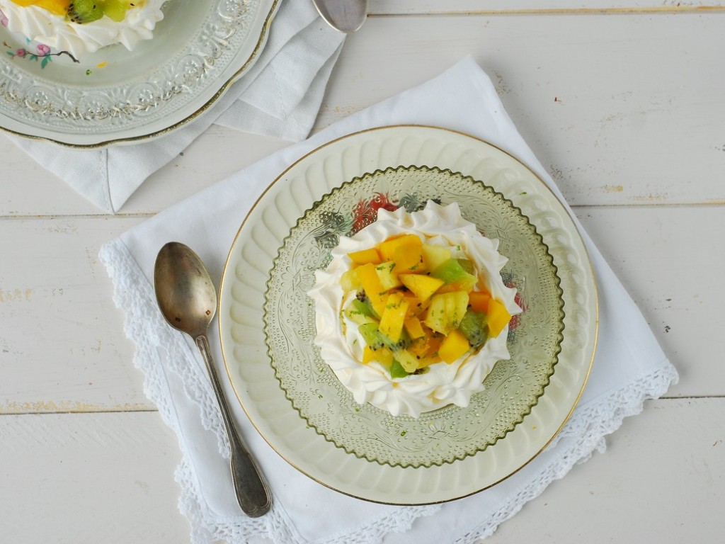 Pavlova aux fruits exotiques {ananas, kiwi, mangue}